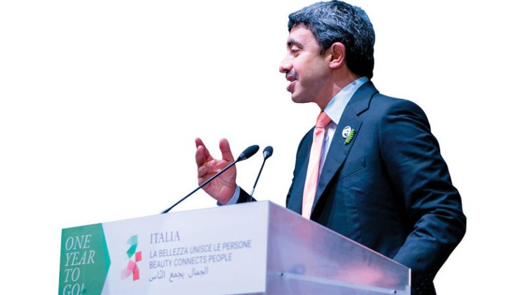 عبدالله بن زاید از ایتالیا به جهانیان: شما را در نمایشگاه اکسپو 2020 دبی فرا خوانده و خوش آمدید می گویم