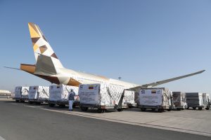 هواپیمای اماراتی شامل ۱۳ تن لوازم پزشکی و بهداشتی، دستگاه برای آزمایش کووید-۱۹، ضد عفونی کننده ها، ماسک صورت و دستکش دستی است.