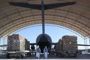 پنجمین هواپیمای کمک پزشکی فرستاده توسط امارات شامل حدود ۲۱ تن تجهیزات پزشکی و مواد آزمایش است.