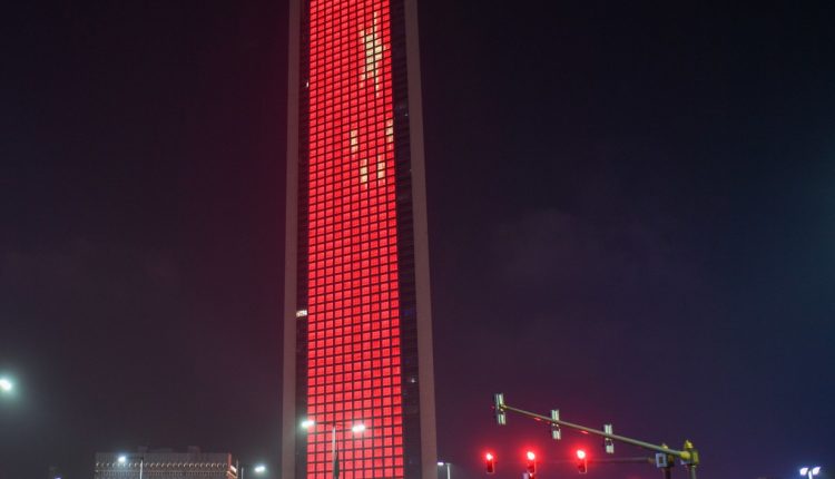 نشانه های امارات جهت همبستگی با پرچم چین تزئین شد
